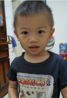 原本是他媽媽也就是我去染髮,結果在我在最後階段洗髮時,突然設計師沒由來一筆說:你給你兒子穿這麼帥,你怎麼不剪個很"潮"的頭?!我說:例如呢?他說瀏海的前面可以剪斜的, 後面剪乾淨,我說那不如給你操刀,因為我是老客戶的關係,她特定把安安插隊進去,要不然假日沒有預約是排不進去的.